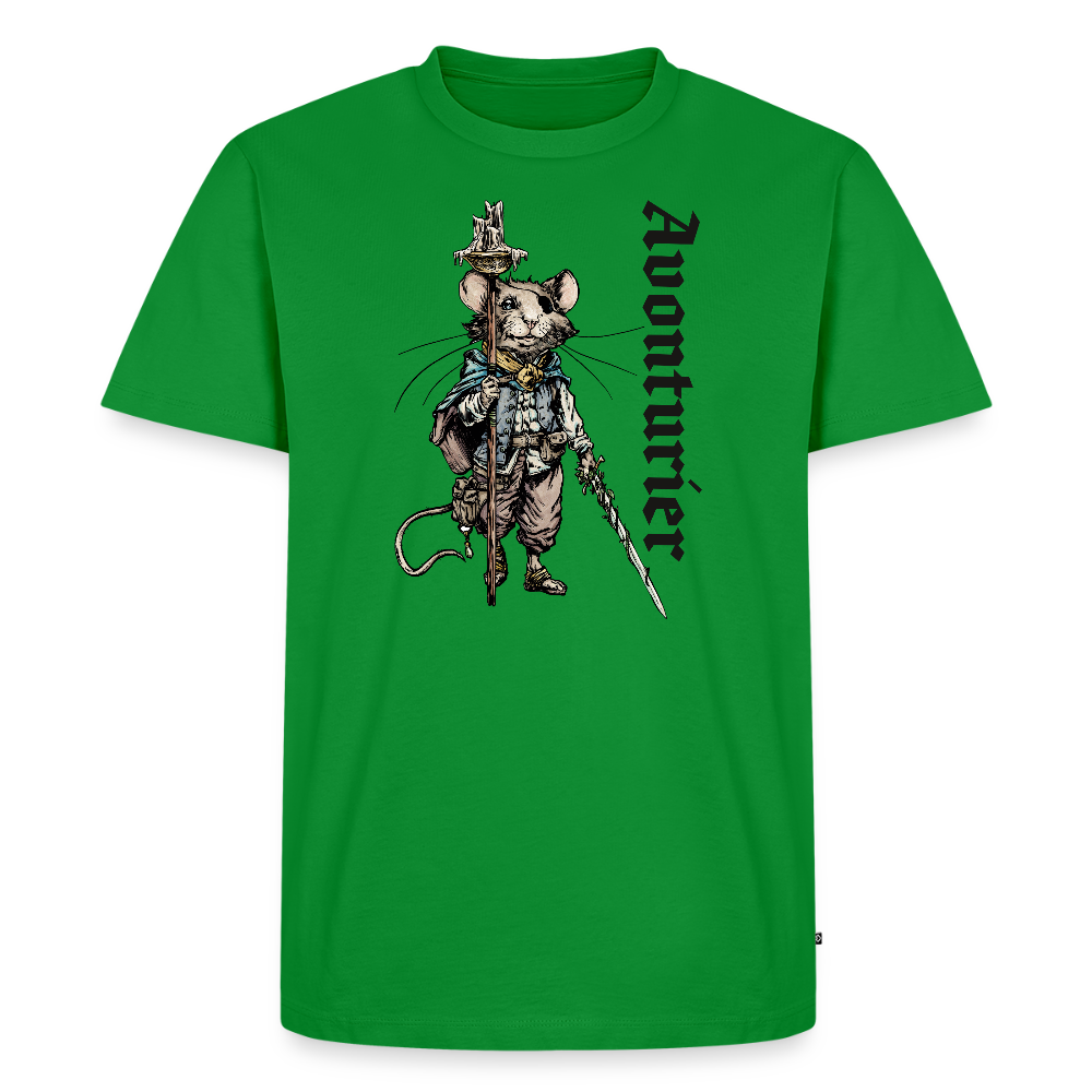 T-shirt met afbeelding van een muisavonturier en de tekst ‘Avonturier’. Afbeelding in kleur, tekst in zwart gedrukt. T-shirt beschikbaar in verschillende kleuren. Voor donkere kleur t-shirt: zie de andere opties in de webwinkel.